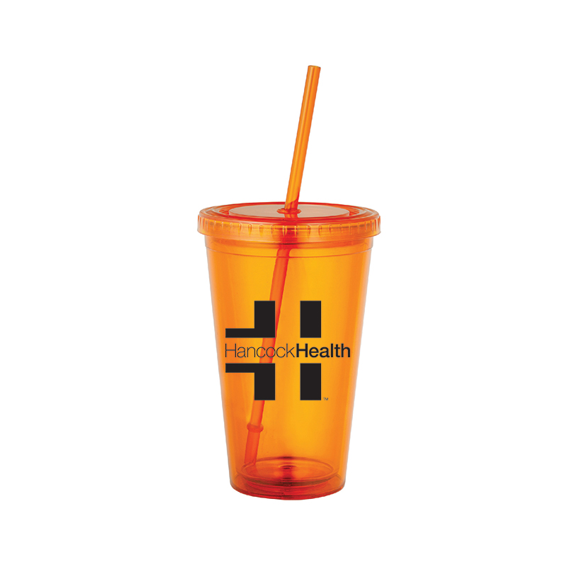 16oz Double-wall acrylic tumbler and straw with stopper.