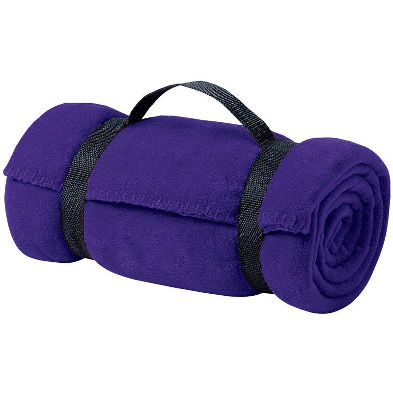 Our value blanket is soft on the budget, but sturdily constructed with a blanket stitch hem to guard against fraying. The easy-to-carry strap makes it perfect for events. | 13.5-ounce, 100% spun polyester fleece Dyed-to-match blanket stitch hem Dimensions: 50' x 60'