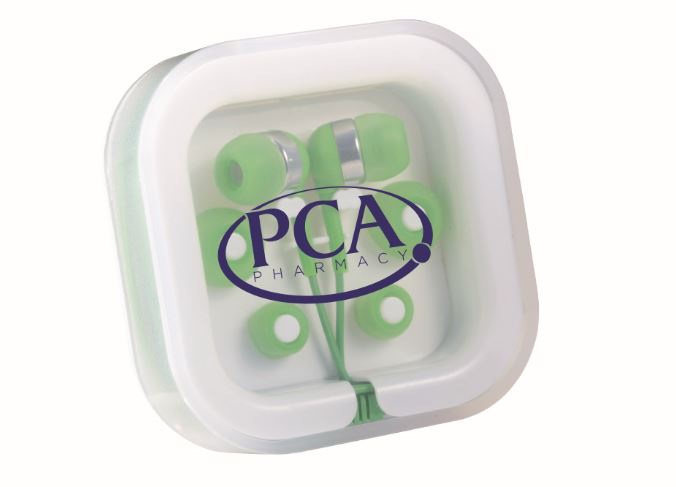 The Color Pop Earbuds can be used with any standard audio device. The set includes three interchangeable soft rubber earbud covers, a plastic case with cable storage, a standard 3.5mm audio jack and a 38 inch earbud cable.
